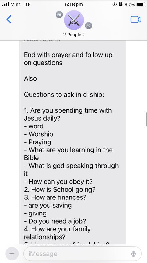 He responded with, “Do you want to do discipleship? Usually when people start asking questions like this about discipleship, they don’t want to do discipleship.”